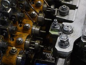 冷間精密鍛造  熱で溶かした金属を鋳型に流し込む鋳造法や、材料を削って形を作りあげる切削法とは違い、